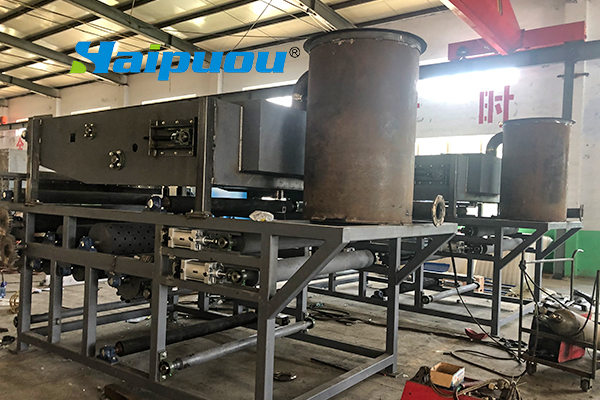 2、重力脫水段長(zhǎng),第一與第二重力脫水段總長(zhǎng)5m多,使污泥在壓榨前充分脫水失去流動(dòng)性。同時(shí),重力脫水段還設(shè)置反轉(zhuǎn)等特殊機(jī)構(gòu),經(jīng)形、“S”形壓榨等作用使污泥濾餅獲得低的含水量。